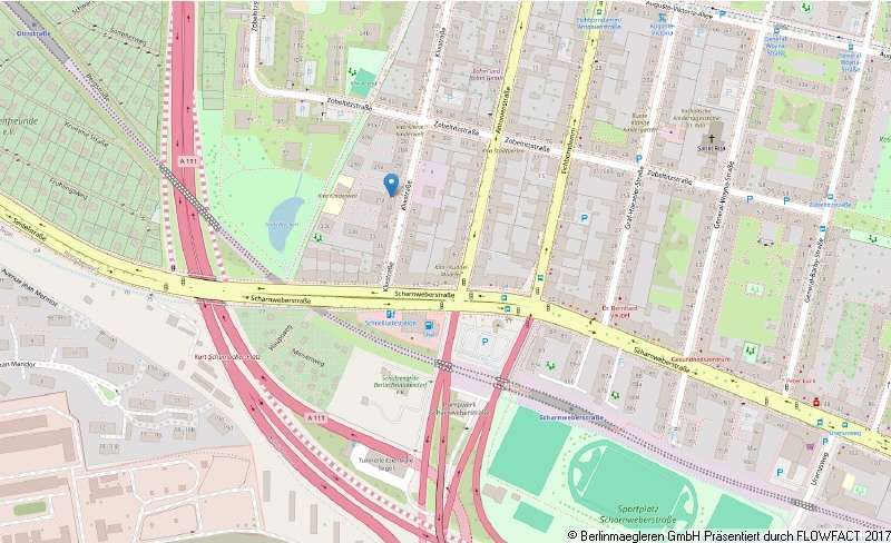 The apartment building is located on a side street with moderate traffic in Berlin's Reinickendorf district. The underground station "Scharnweberstraße" (U6) is only a few minutes' walk away, as is the nearest bus stop. Drivers are quickly on the A111 city highway. In the summer months, it takes 10 to 15 minutes by bike to reach the nearby beach at "Flughafensee" or "Tegeler See". Shopping facilities for daily needs can be found within walking distance.