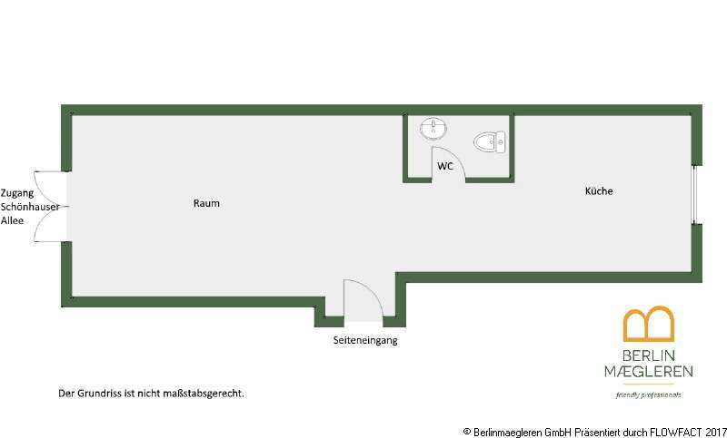 We are offering a commercial space on the ground floor of the front building of a residential and commercial building built in 1900. The building has 33 residential and 2 commercial units. The unit offered here is directly accessible from Schönhauser Allee and is available for immediate occupancy.