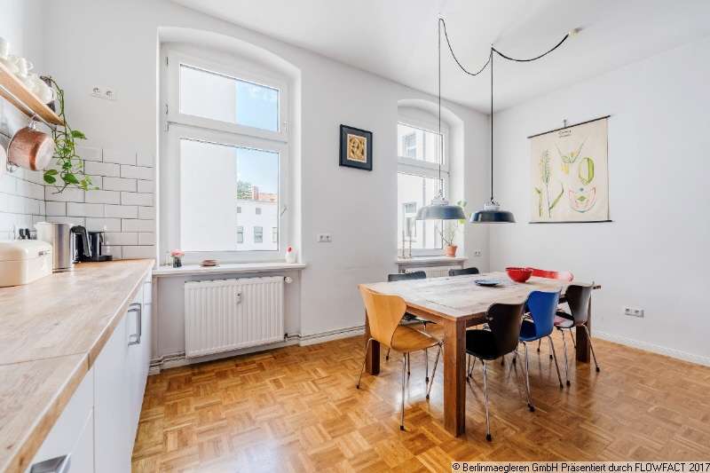 Zum Verkauf steht eine äußerst attraktive Altbauwohnung in der 3.Etage des Vorderhauses eines gepflegten Berliner Altbaus, die bequem mit dem Aufzug zu erreichen ist. Die Wohnung verfügt über 4 Zimmer, wovon eines Zugang zum Balkon hat. Eine großzügige, helle Küche bietet Platz für einen Esstisch, an dem die Familie und Freunde gesellig beisammen sein können.